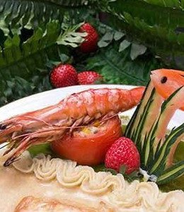 晚餐=鱼或海鲜。任何生菜沙拉或不限种类之水煮青菜。一块面包。咖啡或茶。