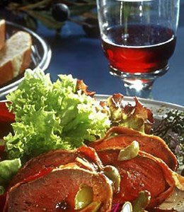 *油醋沙拉作法:小红洋葱一、两粒、一小粒蒜头都切碎洒在沙拉上,橄榄油两大匙、酒醋不限两大匙,盐巴、黑胡椒粉适量,再将巴西里碎洒上。此油醋作法适用于黄瓜及任何种类之西洋生菜。