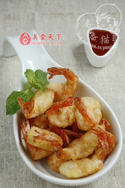 炸好的凤尾虾蘸着椒盐或者泰式甜辣酱吃相当Nice~