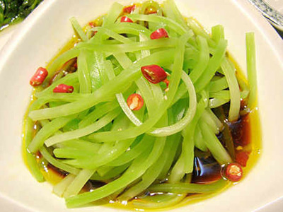 莴笋营养丰富,含有天门冬氨酸、谷氨酸和精氨酸等17种氨基酸,维生素C、A以及矿物质丰富,尤其含钾多达212毫克/百克,是高血糖、高血压和高血脂患者的常用美食。想让莴笋营养保存得最好,不用琢磨复杂的烹饪方法,直接生吃凉拌就可以了。莴笋只要洗净、去皮、切丝就可以凉拌了,但提醒消化能力差的老年人和病人还是熟吃更好。