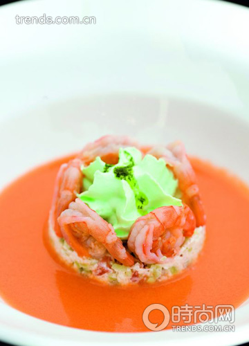 传统的蕃茄冷汤在高档餐厅里被厨师重新演绎